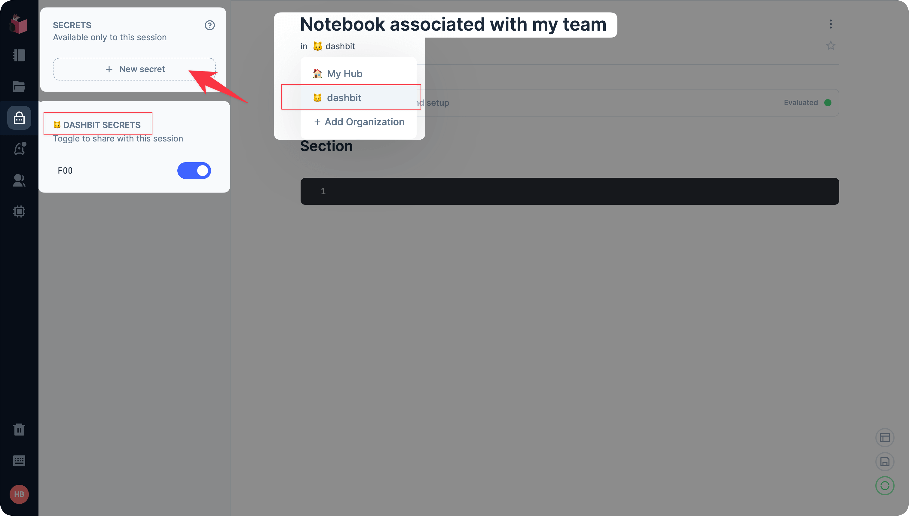 Just add a secret to your organization hub, and Livebook Teams will synchronize it with the Livebook of every member of your organization.